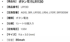 LR1130 ボタン電池 50個【大容量85mAh】 使用期限2035/12 (互換型番LR1130, AG10, 389, LR54, L1131F, SR1130SW, 189, RW89, V10GA, G10A)
